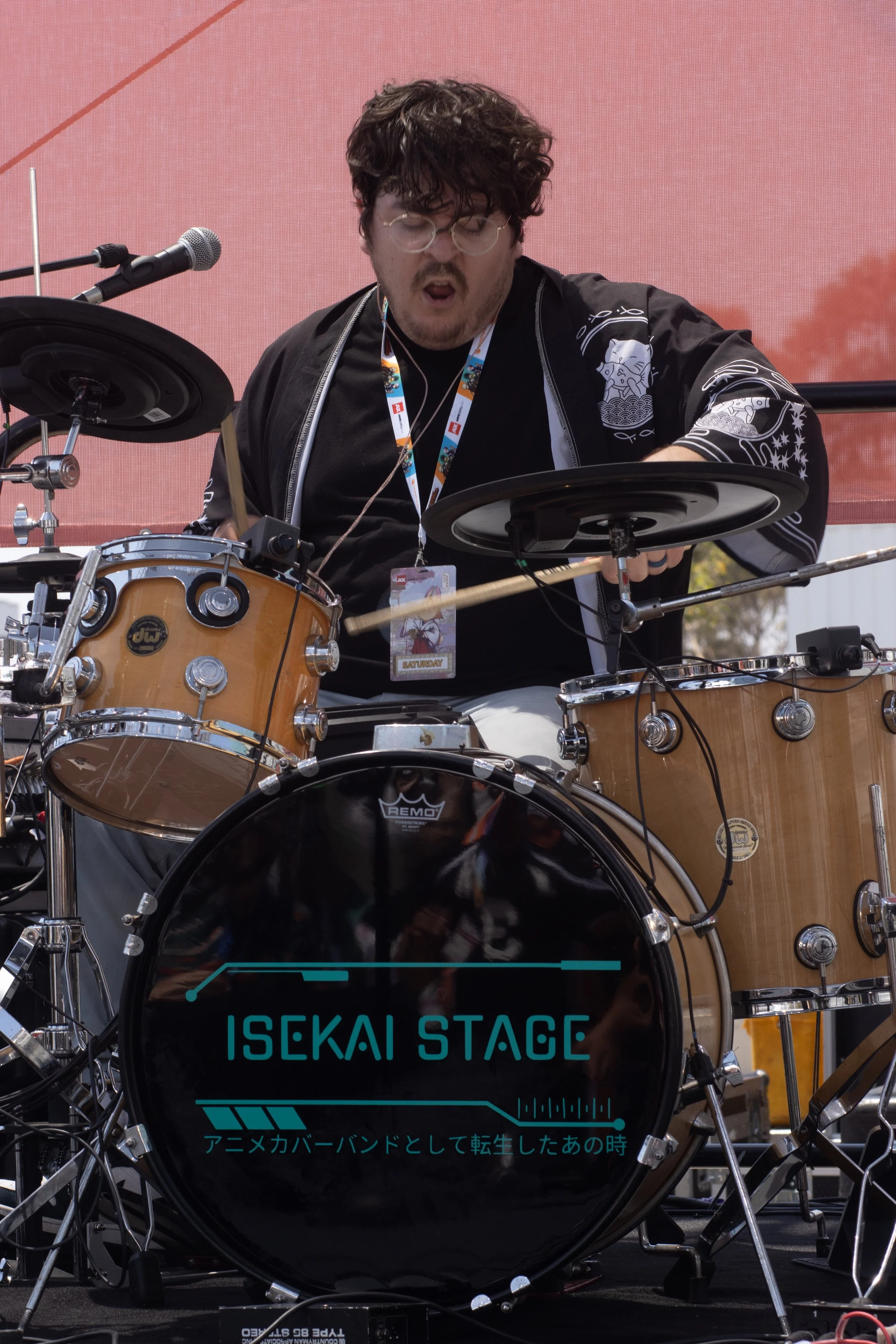 Isekai Stage formed in August of 2022 as an anime cover band with the goal of being able to perform at Anime Expo someday. They quickly accomplished that dream within a year and went on to play at the Santa Monica Pier for HoYoverse, Dodger Stadium for Hololive, Twitch Con, and out of state conventions.